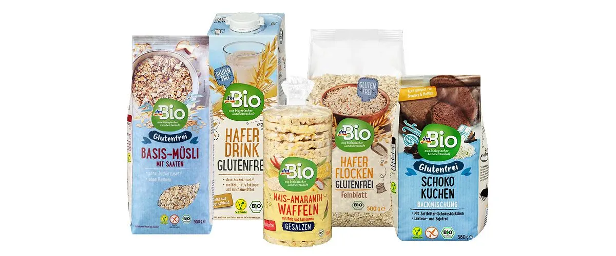Nabídka obsahuje také bezlepkové alternativy k potravinám, které běžně obsahují obilnou složku, například k müsli, krekrům, těstovinám či směsím na pečení moučníků a chleba. U svých produktů přitom dm dbá nejen na vhodné složení a příznivou cenu, ale také vynikající chuť.