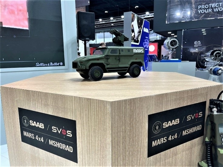S výsledkem spolupráce SAAB a SVOS se při návštěvě české expozice seznámil také předseda vlády ČR Petr Fiala, který si v doprovcodu prezidenta Asociace obranného a bezpečnostního průmyslu ČR Jiřího Hynka prohlédl maketu bojového vozidla MARS 4×4 se systémem MSHORAD.