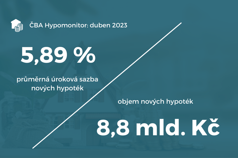 Objem nově poskytnutých hypoték bez refinancování dosáhl v dubnu 8,8 miliardy korun, o 1,5 miliardy korun méně než v březnu (10,3 miliardy korun). Objem refinancovaných úvěrů (interně či z jiné instituce) pak činil 1,8 miliardy korun, o 0,5 miliardy korun méně než v březnu (2,3 miliardy korun).