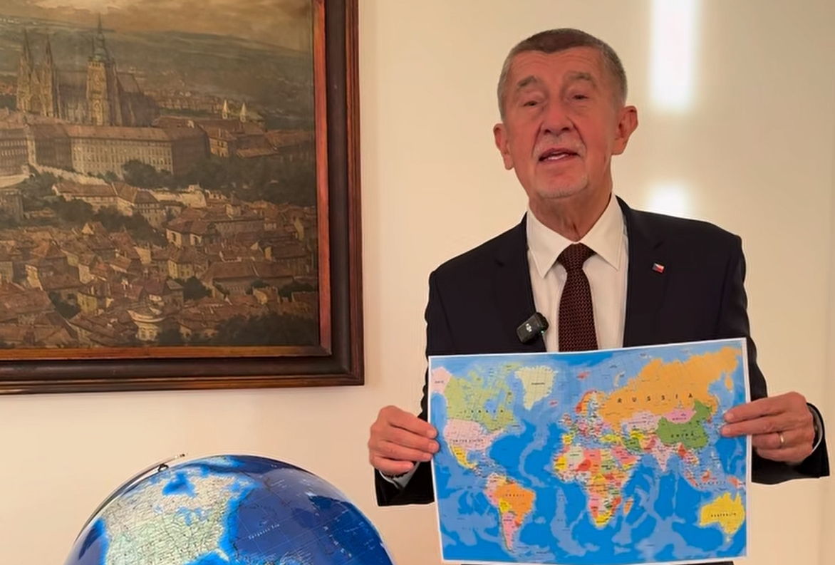 Následně Babiš představil svůj nově zakoupený glóbus a pokusil se vysvětlit, v čem je glóbus lepší než obyčejná mapa.