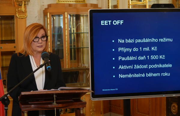 Ministryně financí Alena Schillerová (ANO) představila plán na opětovné zavedení elektronické evidence tržeb (EET). Takzvanou EET 2.0 by chtěla ministryně spustit od roku 2027 pro všechny kategorie obchodníků. Schillerová od ní očekává zisk státu ze zvýšení daní o 14 až 15 miliard korun ročně.